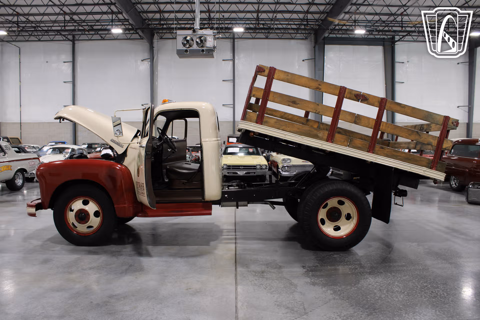 Z dumą prezentuje Chevroleta Stake Body Truck z 1953 roku. To klasyczny samochód ciężarowy z nadwoziem typu „stake body truck”, który odzwierciedla solidny i funkcjonalny design powojennej Ameryki. Napędza go niezawodny rzędowy silnik sześciocylindrowy połączony z 4-biegową manualną skrzynią biegów, zapewniającą doskonałe osiągi.