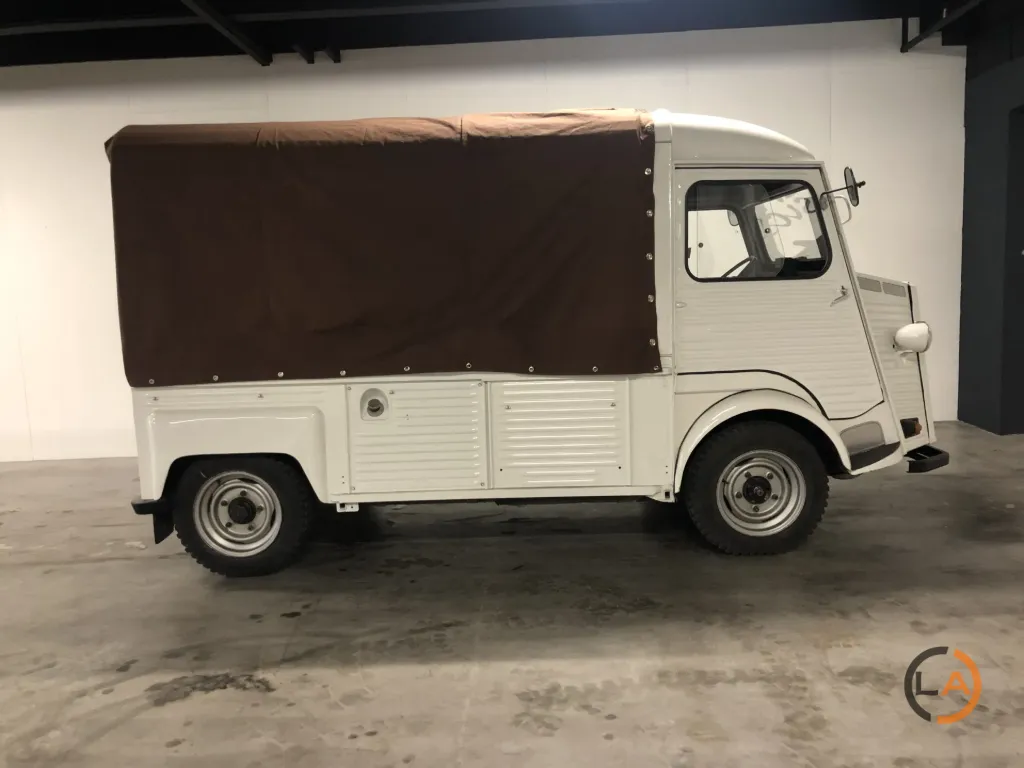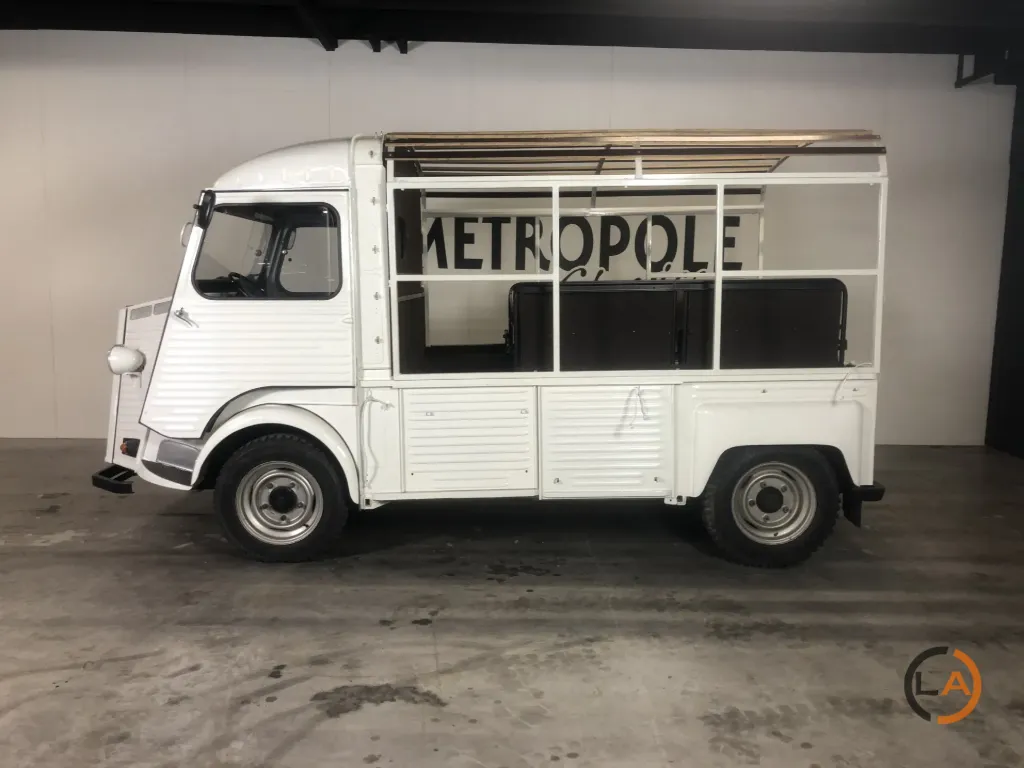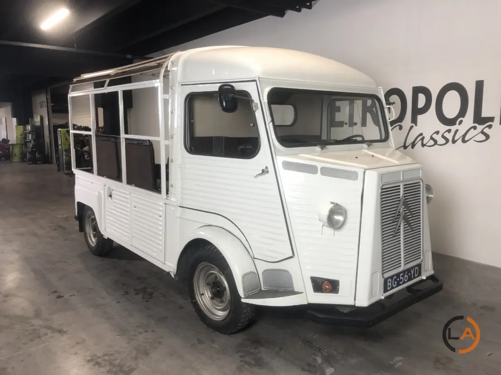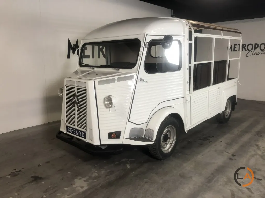 Pięknie odrestaurowany HY Pick-Up. Wyposażony w nowy płócienny dach, przestrzeń ładunkowa profesjonalnie wyłożona panelami i wyposażona w ławki, które z łatwością pomieszczą 8 osób. Samochód jeździ, zmienia biegi i hamuje prawidłowo i może być wykorzystywany do wielu celów. Citroën H Van lub Citroën HY to furgon dostawczy produkowany w latach 1947-1982. Z charakterystycznym „nadwozie z blachy falistej” HY był powszechnie spotykany w Europie. Pojazd ten pozostawał w produkcji praktycznie niezmienionej przez co najmniej 34 lata, co stanowi absolutny rekord dla furgonetki dostawczej. Łącznie wyprodukowano 475 000 egzemplarzy. Cięższa wersja o większej ładowności nosiła nazwę „HZ”. Praktyczna przestrzeń ładunkowa była wykorzystywana do różnych celów, od transportu produktów rolnych po transport karetek. Wymagania konstrukcyjne dla HY były w pewnym stopniu podobne do wymagań dla 2CV: napęd na przednie koła, niskie zużycie paliwa i dobre prowadzenie na drodze. Pierwsze plany tego samochodu były już na desce kreślarskiej podczas II wojny światowej, ale pierwszy prototyp zjechał z linii montażowej dopiero po 1945 roku. Konstrukcja HY nie opierała się na nadwoziu samonośnym. Pożądane było podwozie z nadwoziem. Cała technologia była skoncentrowana w przedniej części samochodu (silnik, skrzynia biegów i układ napędowy). Zaletą tego rozwiązania jest to, że HY można dość łatwo wydłużyć, niejako przecinając samochód na pół tuż za kabiną; wystarczyło wydłużyć jedynie belki podwozia i przewody hamulcowe. HY występował w setkach wariantów: jako kamper, pojazd cateringowy, pickup, transporter koni itp. W Belgii HY był ulubionym pojazdem mobilnej frytkownicy… W latach 1963-1970 HY był również montowany w Holandii, w zakładach Citroën Nederland przy Stadionplein w Amsterdamie. Produkcja wynosiła około 400 samochodów rocznie.