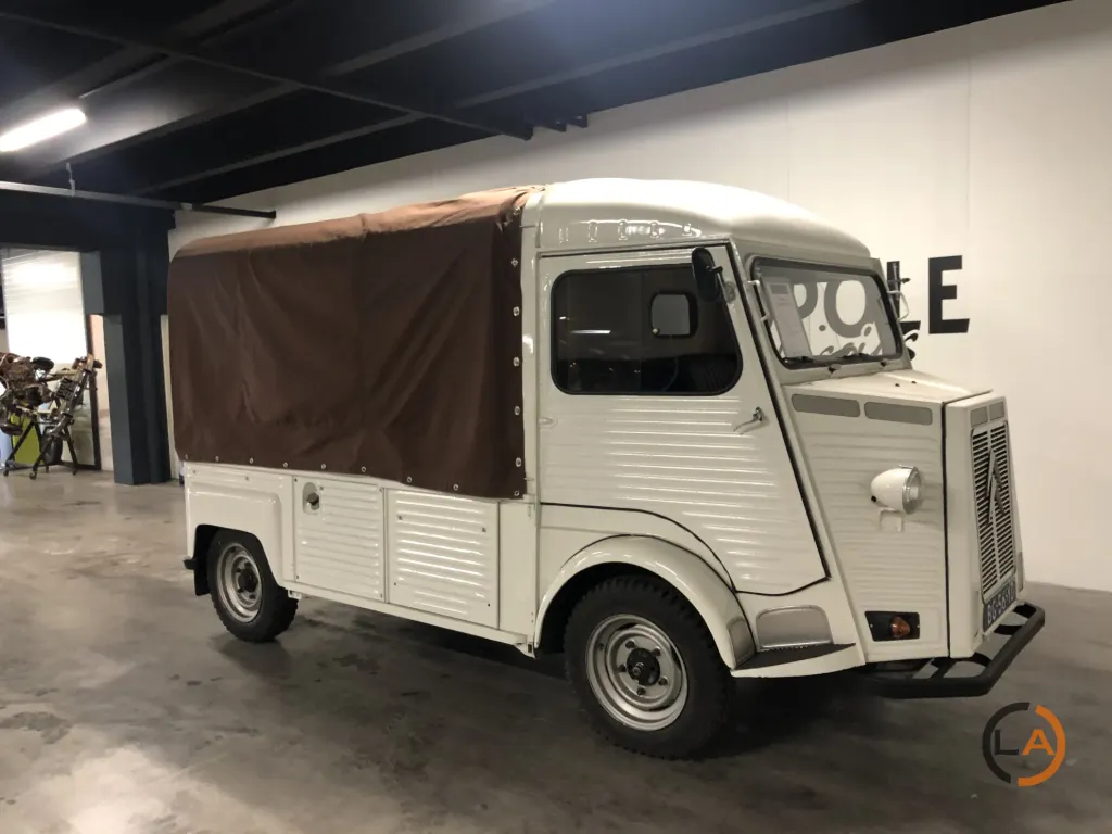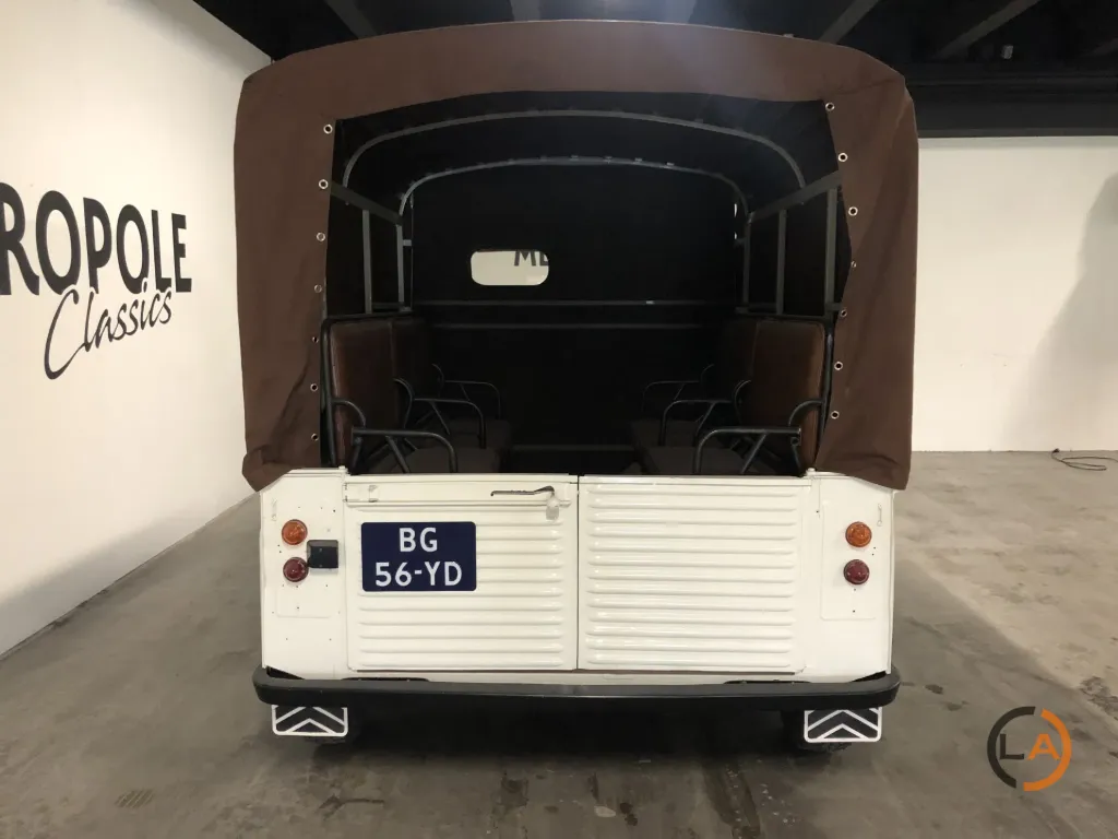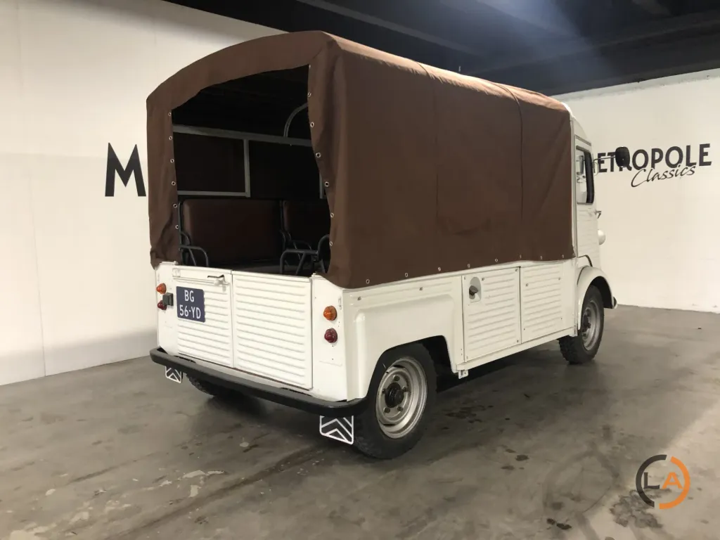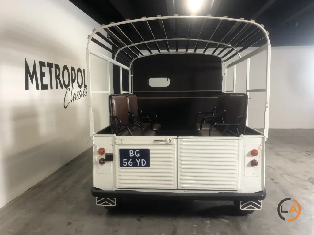 Pięknie odrestaurowany HY Pick-Up. Wyposażony w nowy płócienny dach, przestrzeń ładunkowa profesjonalnie wyłożona panelami i wyposażona w ławki, które z łatwością pomieszczą 8 osób. Samochód jeździ, zmienia biegi i hamuje prawidłowo i może być wykorzystywany do wielu celów. Citroën H Van lub Citroën HY to furgon dostawczy produkowany w latach 1947-1982. Z charakterystycznym „nadwozie z blachy falistej” HY był powszechnie spotykany w Europie. Pojazd ten pozostawał w produkcji praktycznie niezmienionej przez co najmniej 34 lata, co stanowi absolutny rekord dla furgonetki dostawczej. Łącznie wyprodukowano 475 000 egzemplarzy. Cięższa wersja o większej ładowności nosiła nazwę „HZ”. Praktyczna przestrzeń ładunkowa była wykorzystywana do różnych celów, od transportu produktów rolnych po transport karetek. Wymagania konstrukcyjne dla HY były w pewnym stopniu podobne do wymagań dla 2CV: napęd na przednie koła, niskie zużycie paliwa i dobre prowadzenie na drodze. Pierwsze plany tego samochodu były już na desce kreślarskiej podczas II wojny światowej, ale pierwszy prototyp zjechał z linii montażowej dopiero po 1945 roku. Konstrukcja HY nie opierała się na nadwoziu samonośnym. Pożądane było podwozie z nadwoziem. Cała technologia była skoncentrowana w przedniej części samochodu (silnik, skrzynia biegów i układ napędowy). Zaletą tego rozwiązania jest to, że HY można dość łatwo wydłużyć, niejako przecinając samochód na pół tuż za kabiną; wystarczyło wydłużyć jedynie belki podwozia i przewody hamulcowe. HY występował w setkach wariantów: jako kamper, pojazd cateringowy, pickup, transporter koni itp. W Belgii HY był ulubionym pojazdem mobilnej frytkownicy… W latach 1963-1970 HY był również montowany w Holandii, w zakładach Citroën Nederland przy Stadionplein w Amsterdamie. Produkcja wynosiła około 400 samochodów rocznie.