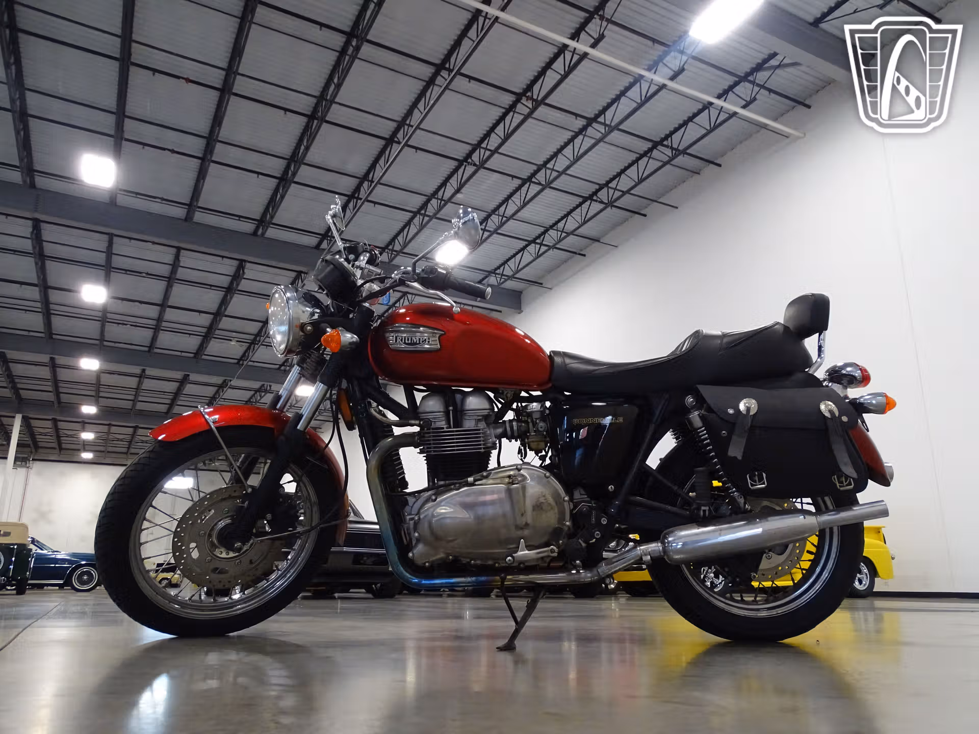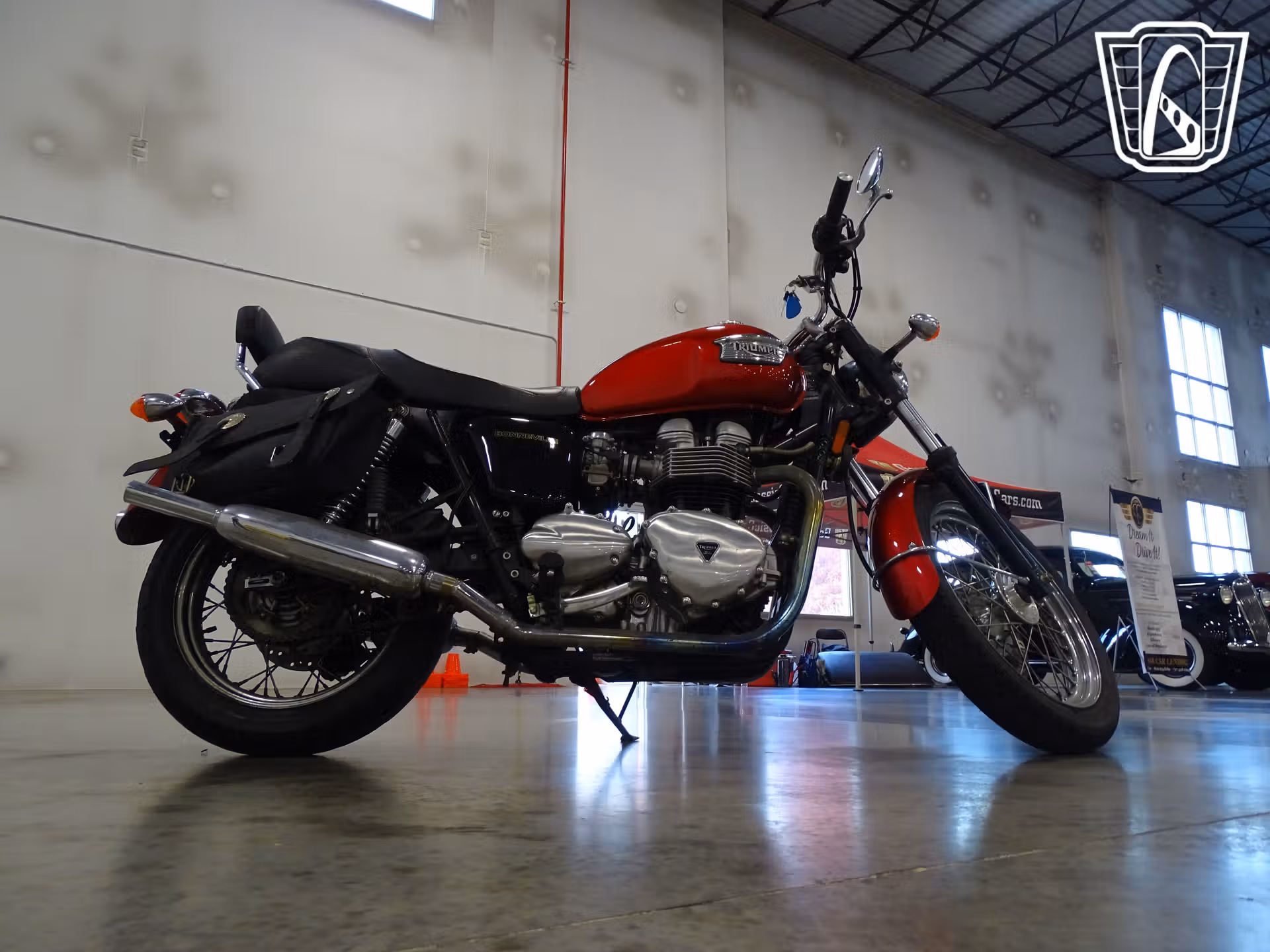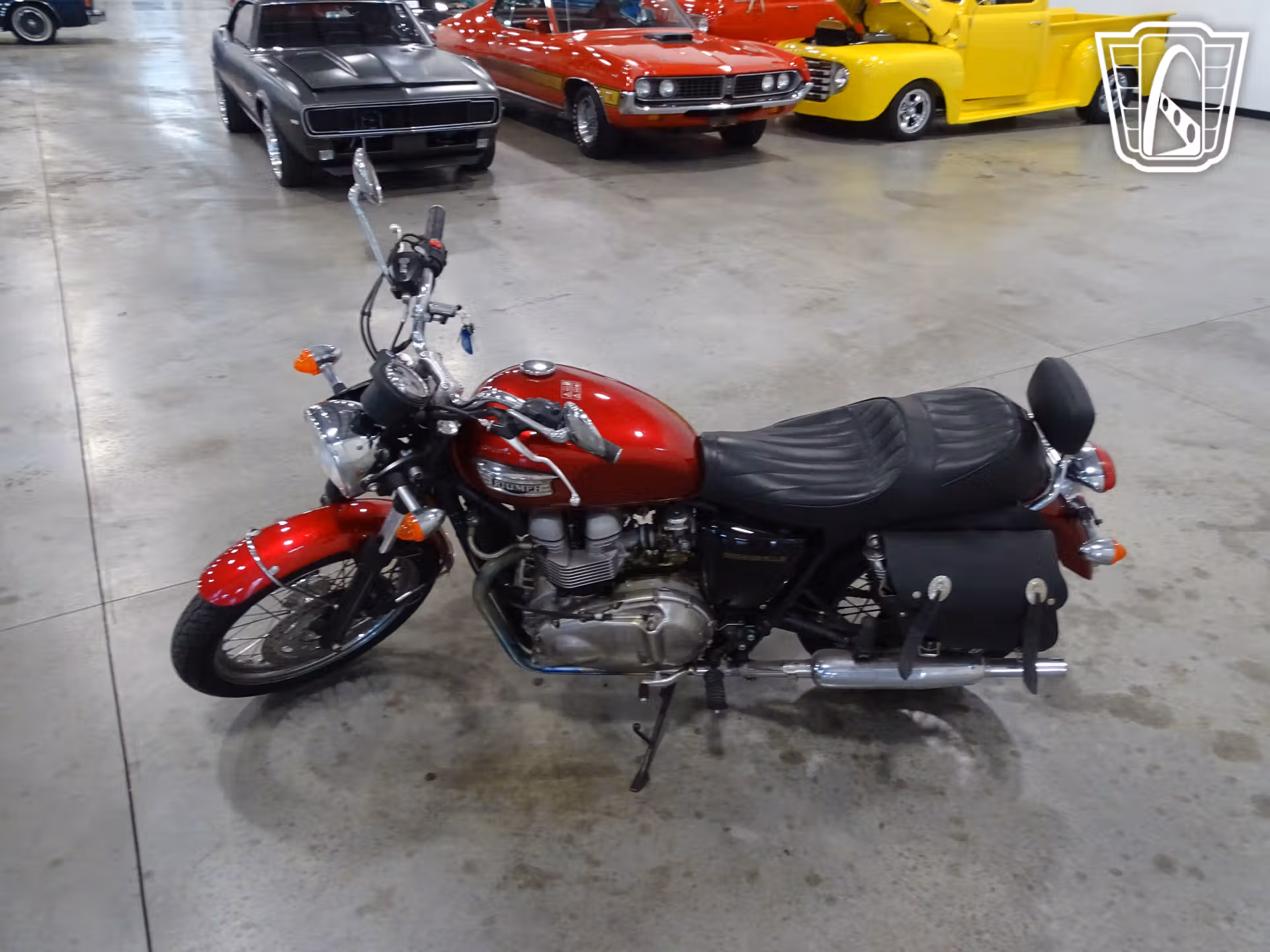 Z dumą prezentuje motocykl Triumph Bonneville z 2003 roku. Pierwszy brytyjski motocykl „Triumph” został wyprodukowany w 1902 roku. Produkowano motocykle niezwykle funkcjonalne i przyjemne w prowadzeniu. Ten „Nowy Bonneville” trafił na rynek w 2001 roku. Oddaje hołd swojemu oryginalnemu, klasycznemu brytyjskiemu stylowi z lat 50. XX wieku. Uznawany za niezwykle przystępny cenowo, a jednocześnie wyposażony w bardziej nowoczesne rozwiązania, takie jak hamulce tarczowe i lepsze prowadzenie dzięki niższemu zawieszeniu Bonneville’a. Chłodzony powietrzem silnik DOHC o pojemności 790 cm3 jest połączony z pięciobiegową skrzynią biegów napędzaną łańcuchem. Ten Triumph jest pomalowany na kolor Cardinal Red, z siedzeniem King & Queen i skórzanymi sakwami.