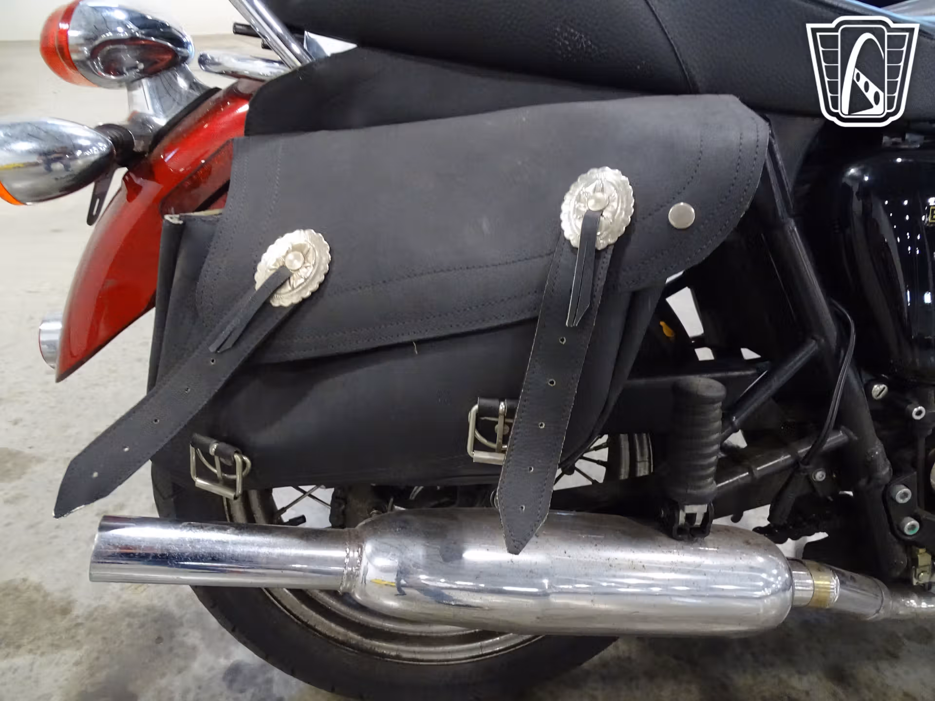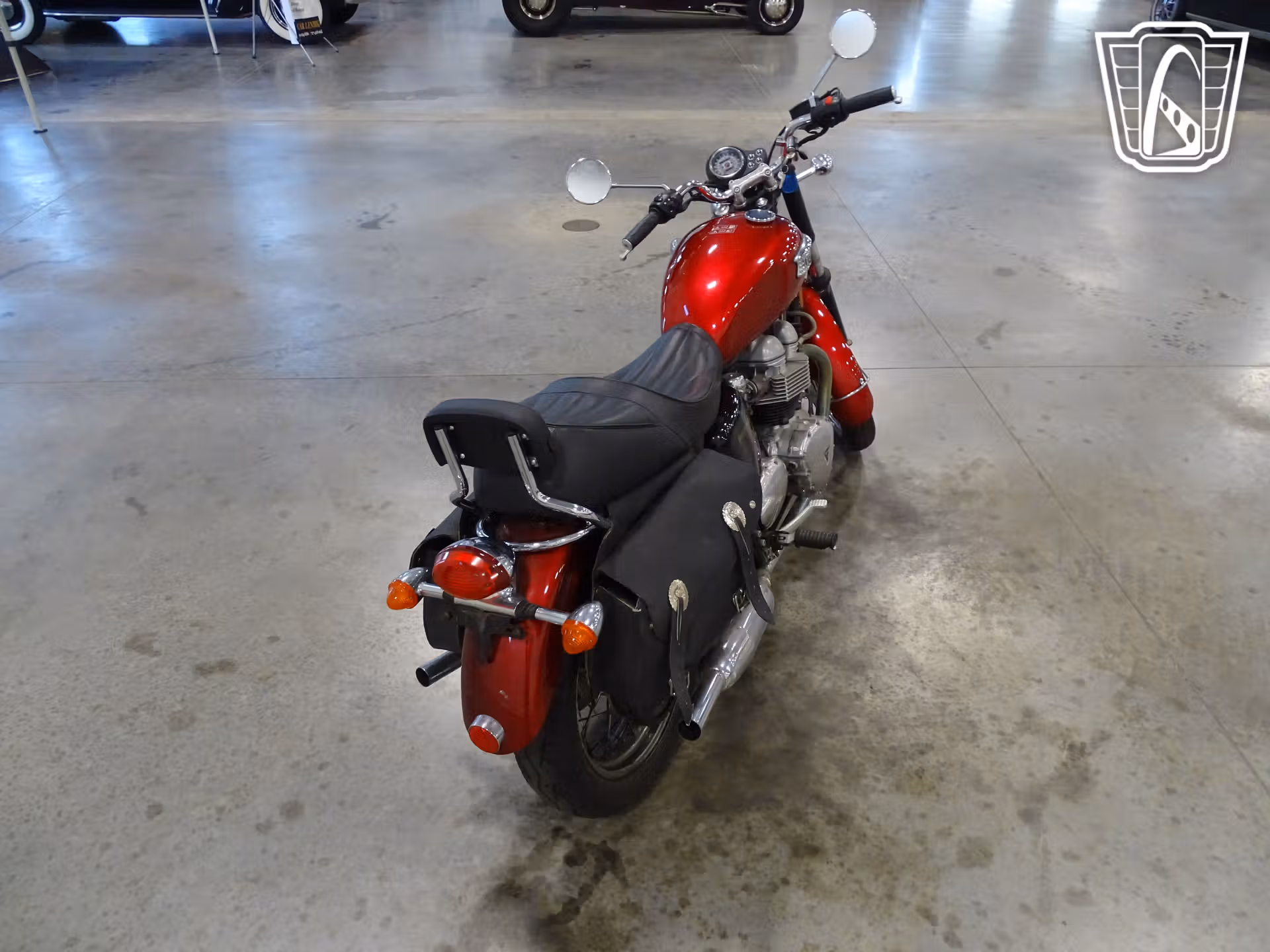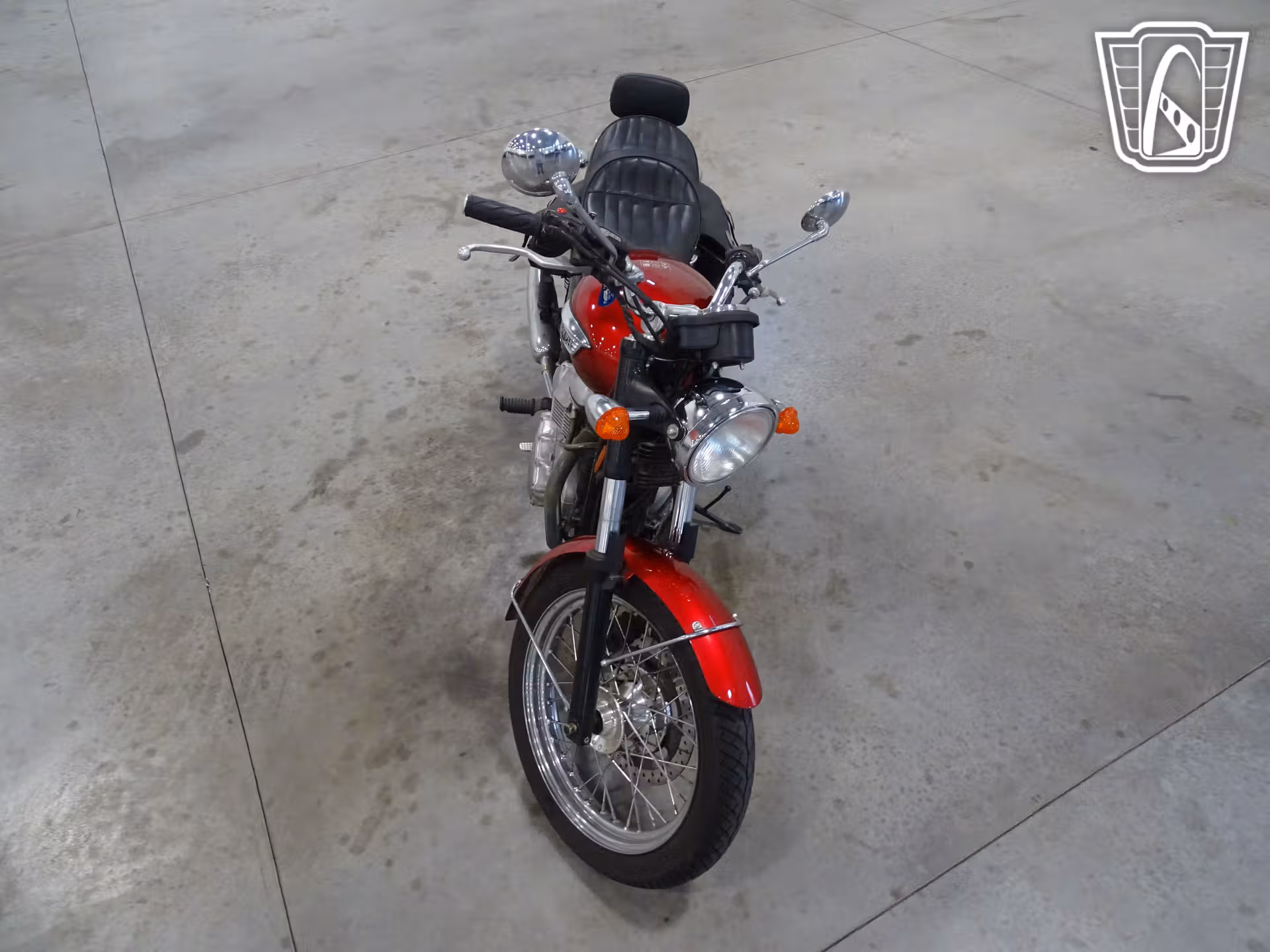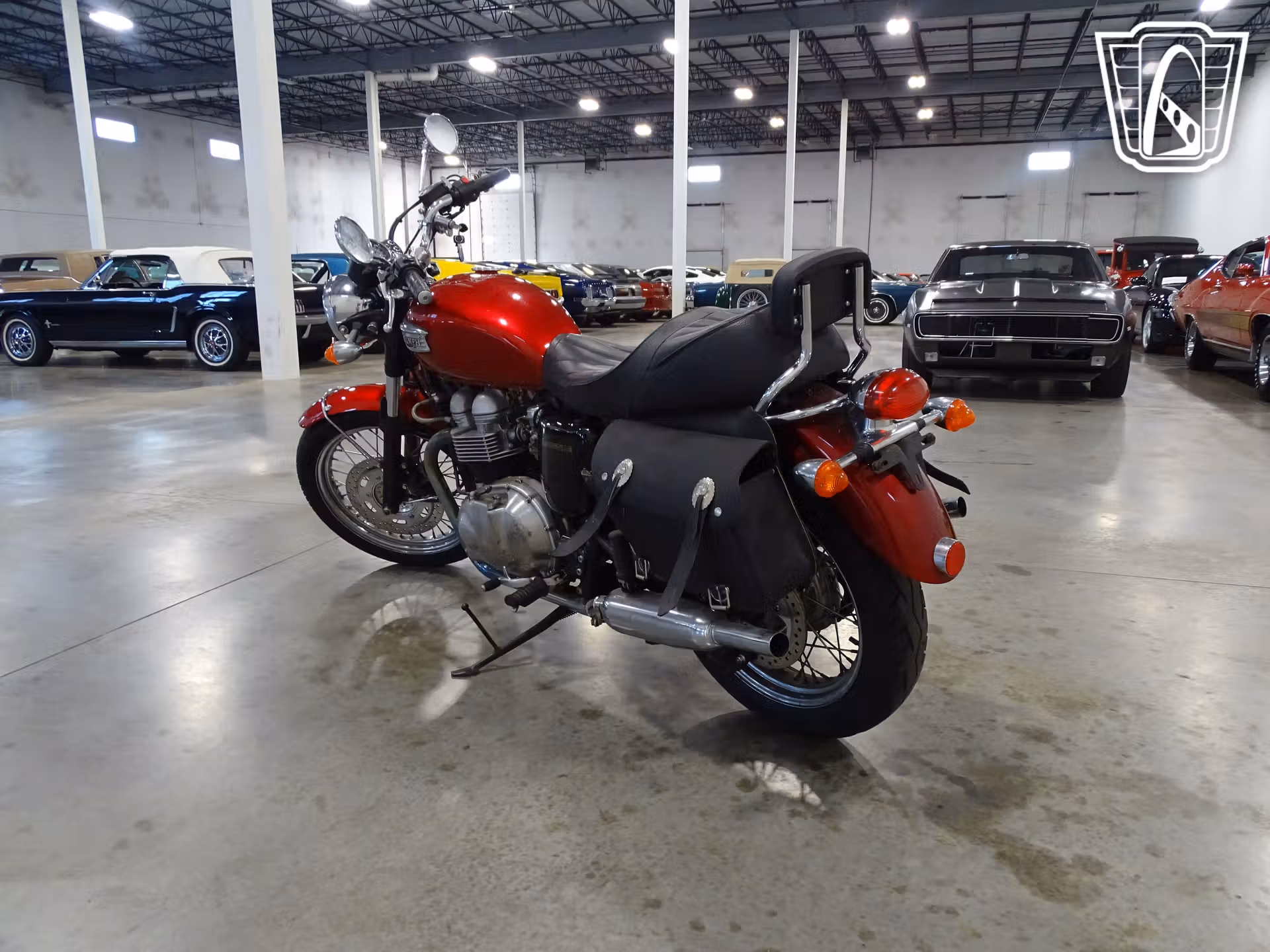 Z dumą prezentuje motocykl Triumph Bonneville z 2003 roku. Pierwszy brytyjski motocykl „Triumph” został wyprodukowany w 1902 roku. Produkowano motocykle niezwykle funkcjonalne i przyjemne w prowadzeniu. Ten „Nowy Bonneville” trafił na rynek w 2001 roku. Oddaje hołd swojemu oryginalnemu, klasycznemu brytyjskiemu stylowi z lat 50. XX wieku. Uznawany za niezwykle przystępny cenowo, a jednocześnie wyposażony w bardziej nowoczesne rozwiązania, takie jak hamulce tarczowe i lepsze prowadzenie dzięki niższemu zawieszeniu Bonneville’a. Chłodzony powietrzem silnik DOHC o pojemności 790 cm3 jest połączony z pięciobiegową skrzynią biegów napędzaną łańcuchem. Ten Triumph jest pomalowany na kolor Cardinal Red, z siedzeniem King & Queen i skórzanymi sakwami.