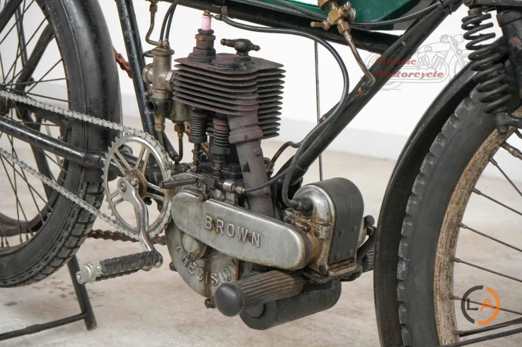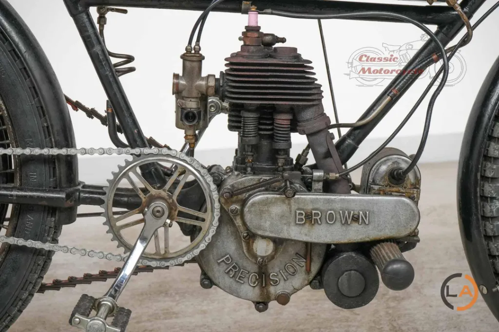 Na sprzedaż niezwykle rzadki i pięknie zachowany motocykl Brown 300 cm³ z 1907 roku – niezwykły okaz z początków motocyklizmu. Motocykl jest w dobrym stanie technicznym, odpala bez problemu i jeździ bardzo dobrze. Był starannie konserwowany i zachował swój autentyczny charakter z piękną patyną. Idealna maszyna dla kolekcjonerów, muzeów lub miłośników zabytkowych motocykli.