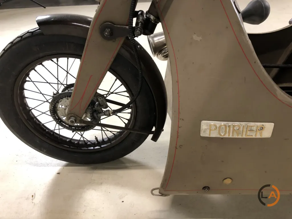Trójkołowiec Poirier to niezwykle rzadki widok na holenderskich drogach. To motocykl, którym można jeździć z prawem jazdy, ponieważ jest to trójkołowiec. Jest nadal w bardzo dobrym stanie i nadaje się do jazdy. Nadal ma skórzane torby na bagaż. Ponadto, posiada silnik o pojemności 125 cm3, który pozwala mu osiągnąć prędkość około 50 km/h. Jest to pojazd dwuosobowy. Ten trójkołowiec został wyprodukowany we Francji i posiada francuskie dokumenty.