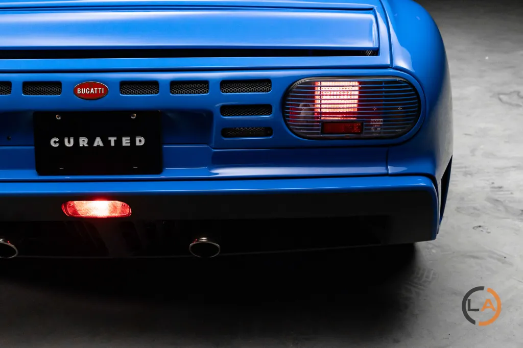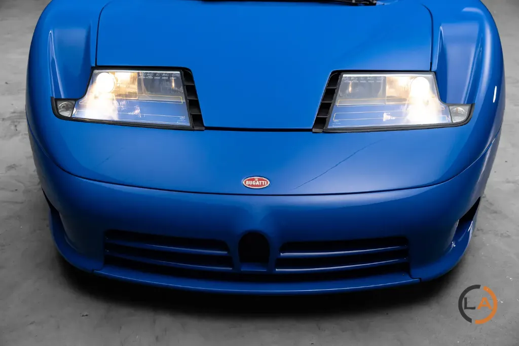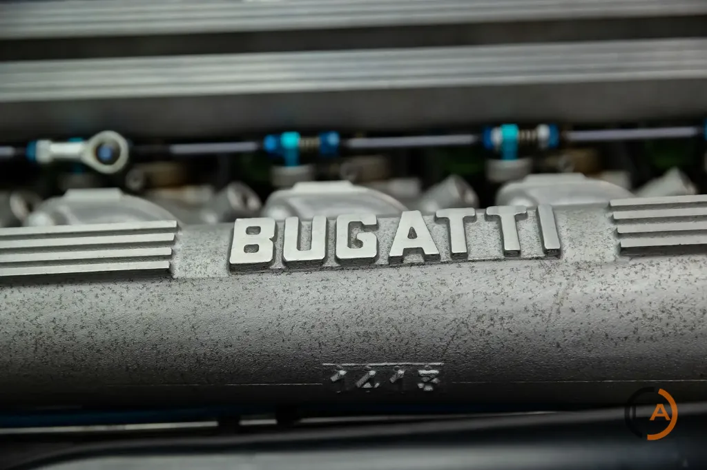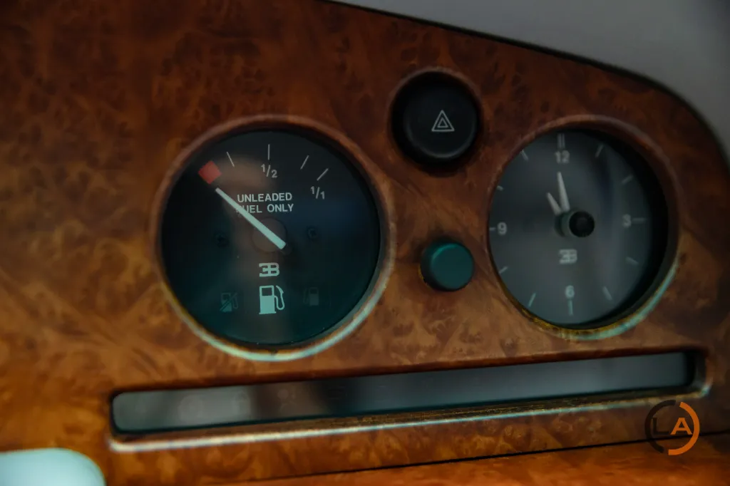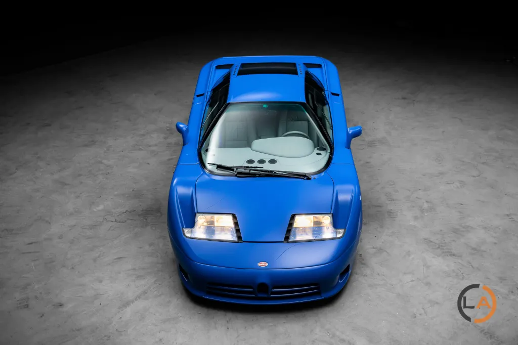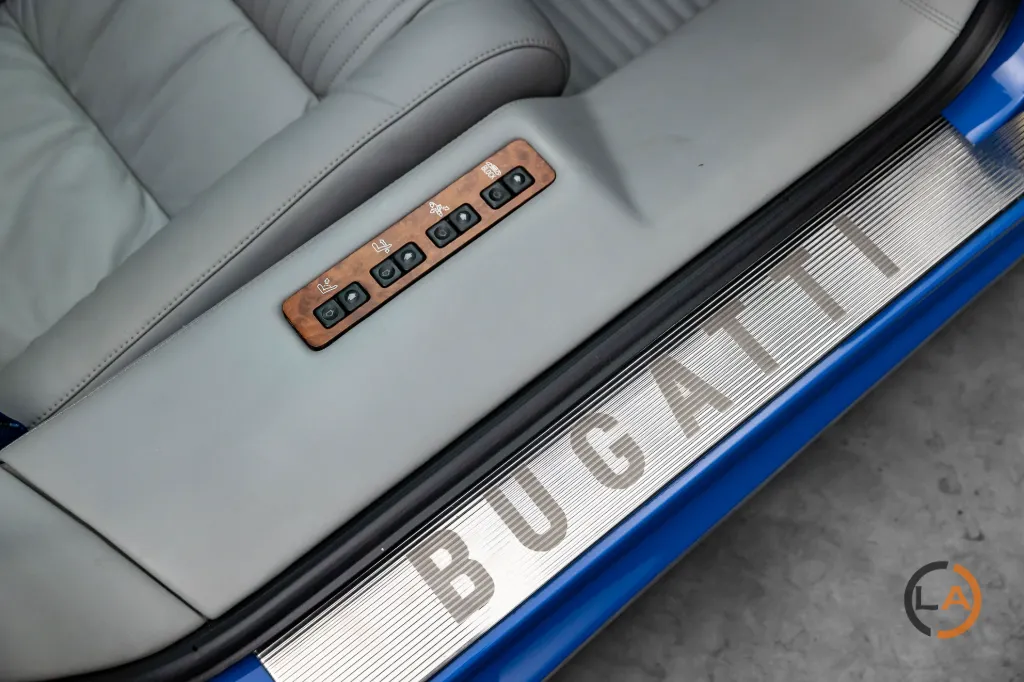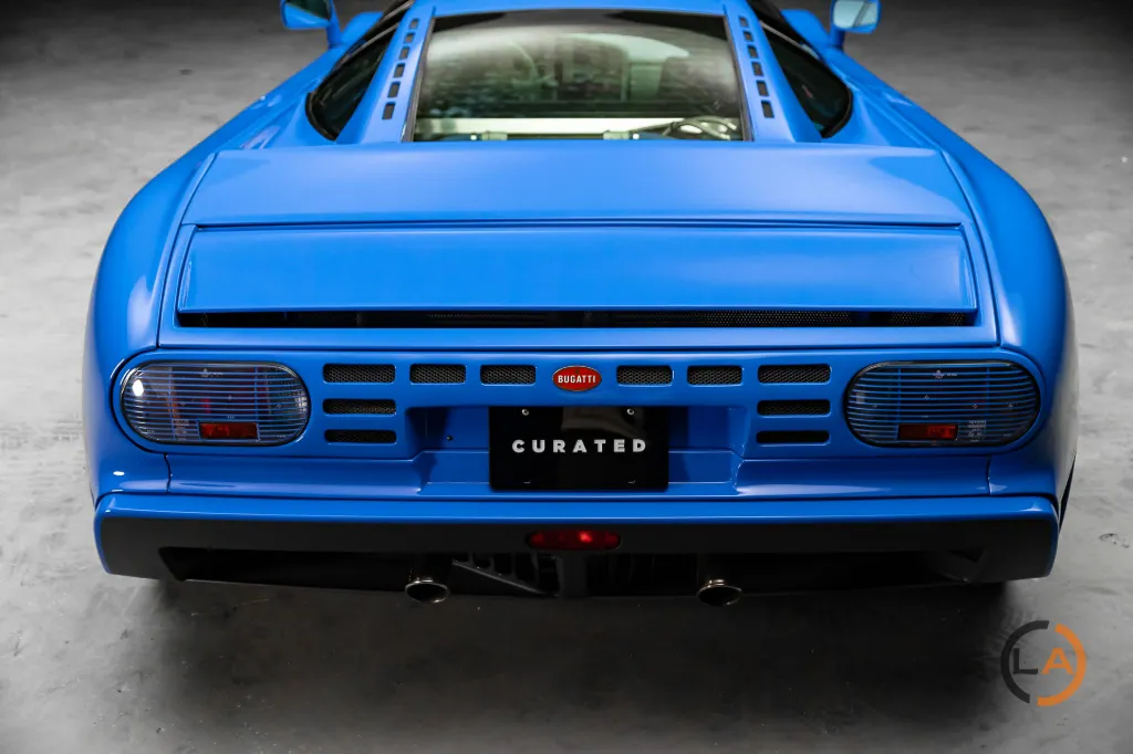 Ten egzemplarz jest wykończony w kolorze Bugatti Blue na skórzanym wnętrzu Grigio i ma przebieg zaledwie 1130 kilometrów od nowości. Jeden z najniższych przebiegów EB110 GT, jaki znamy, pozostaje w pełni oryginalny i nie był restaurowany.