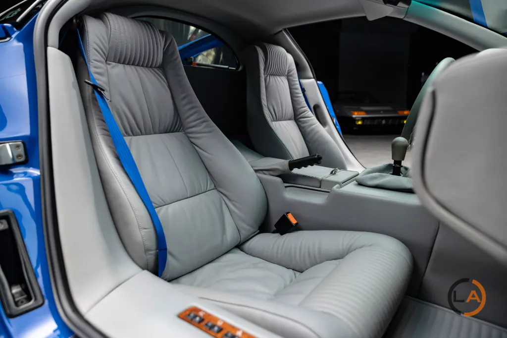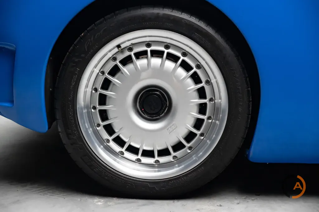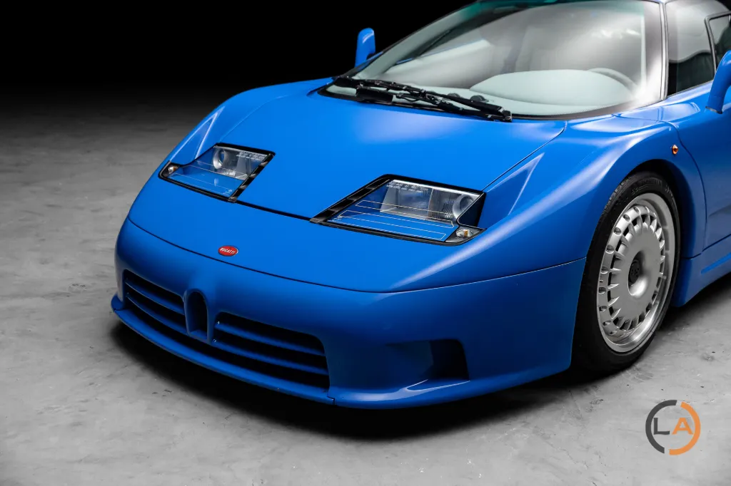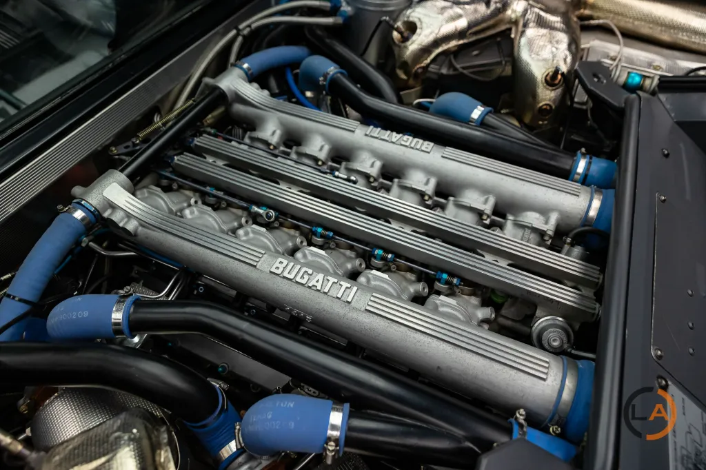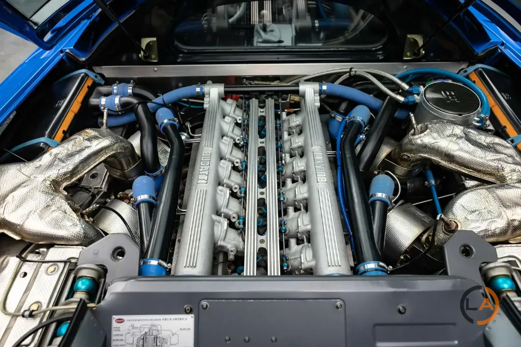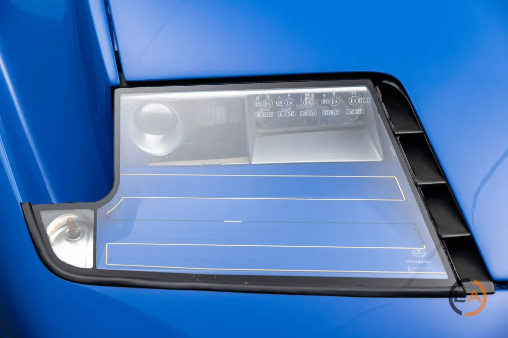 Ten egzemplarz jest wykończony w kolorze Bugatti Blue na skórzanym wnętrzu Grigio i ma przebieg zaledwie 1130 kilometrów od nowości. Jeden z najniższych przebiegów EB110 GT, jaki znamy, pozostaje w pełni oryginalny i nie był restaurowany.
