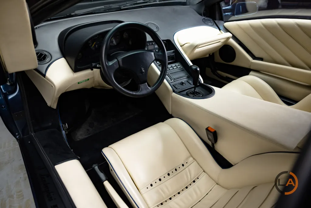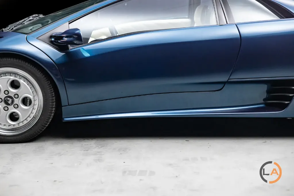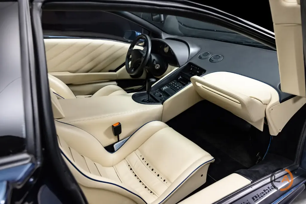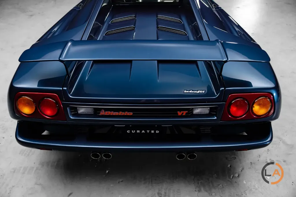 Ten Diablo VT z 1995 roku to unikatowy egzemplarz w kolorze Midnight Blue Metallic, ze skórzanym wykończeniem Panna. Pierwotnie dostarczony do Lamborghini USA 24 listopada 1994 roku, był pierwszym właścicielem Larry’ego Swartza w Stanach Zjednoczonych. Obecnie ma przebieg zaledwie 3000 kilometrów.