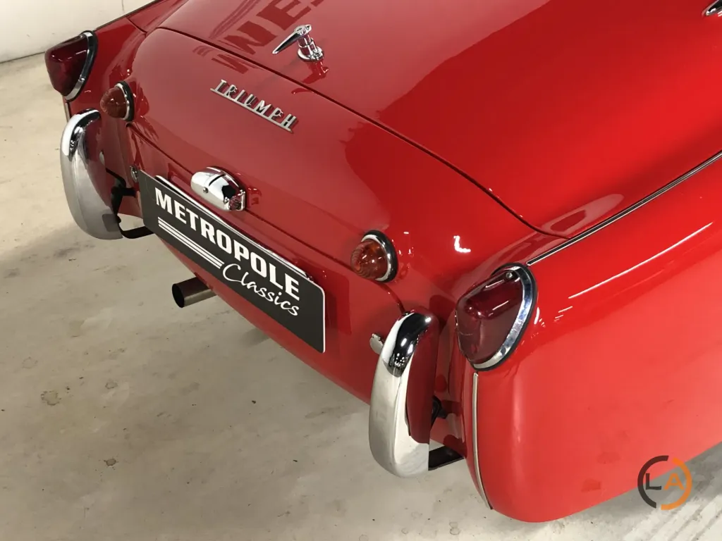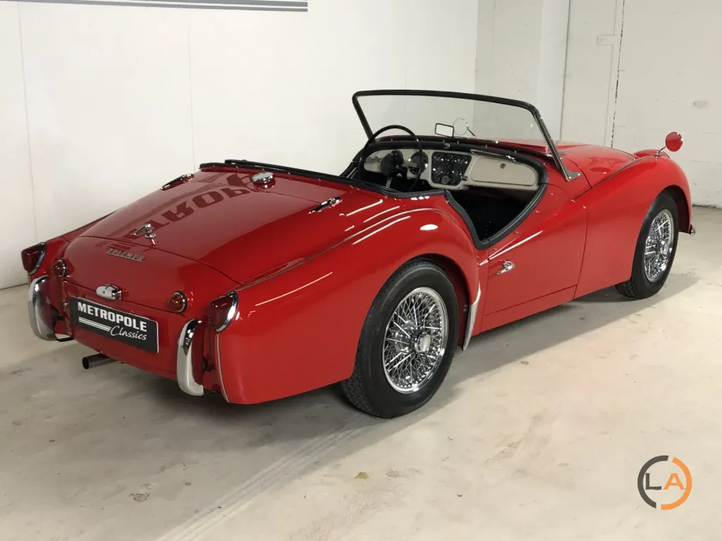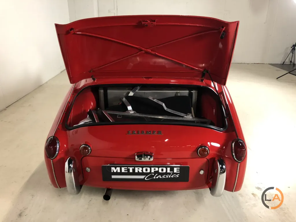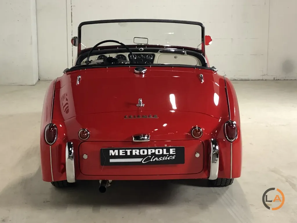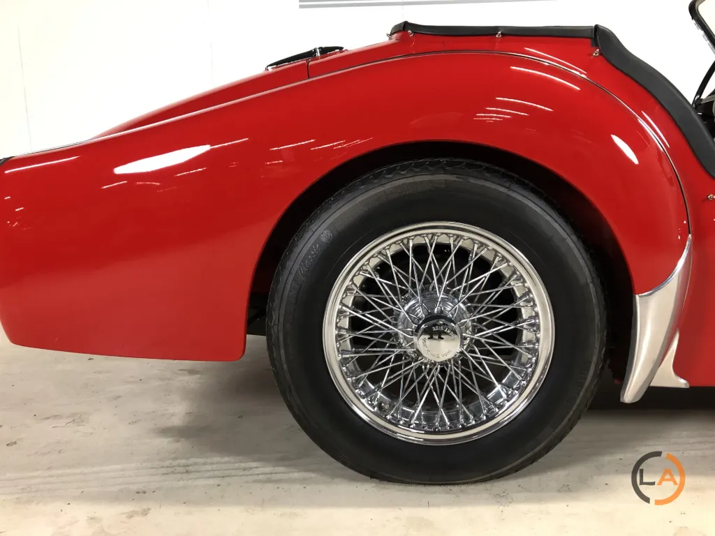Prezentowany tutaj TR3 A to egzemplarz odrestaurowany bez nadwozia, w którym wszystko jest w jak najlepszym porządku. Pod maską widać niemal nowy silnik, który również przeszedł gruntowny remont. Samochód wyposażony jest w czarne, skórzane wnętrze z białymi lamówkami. Triumph wyróżnia się pięknymi chromowanymi felgami szprychowymi z oponami Vredestein Classic. Od czasu renowacji TR przejechał zaledwie 5000 kilometrów. Piękny TR3 A dla entuzjasty prawdziwego, angielskiego samochodu sportowego z otwartym dachem.
