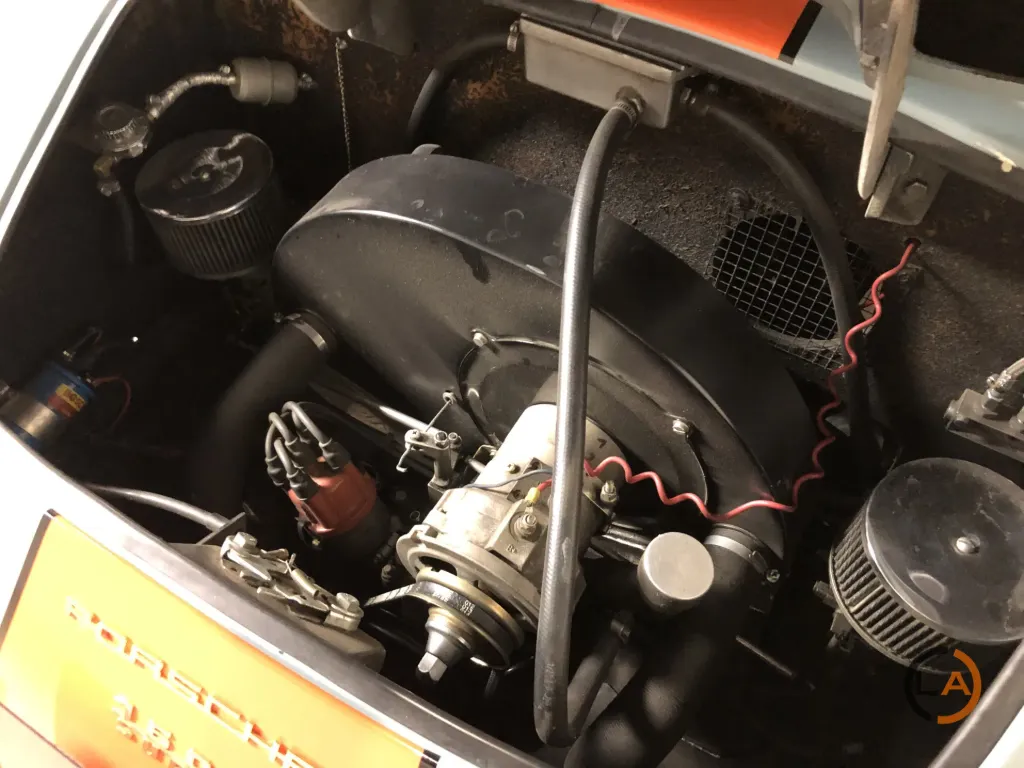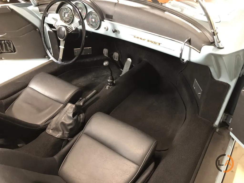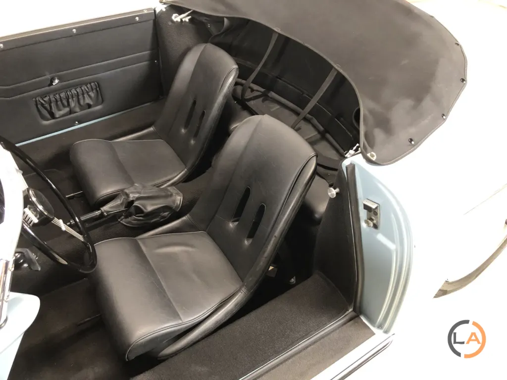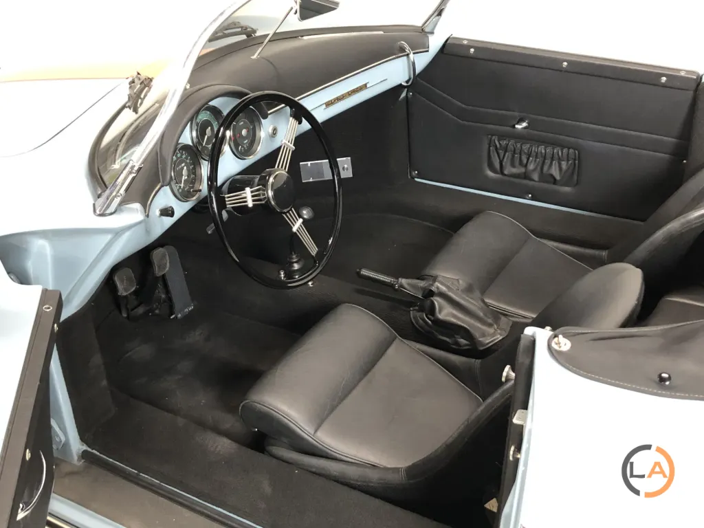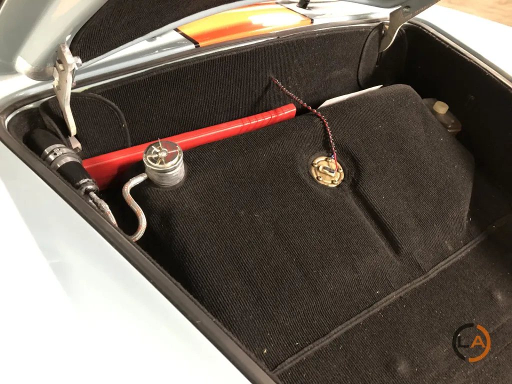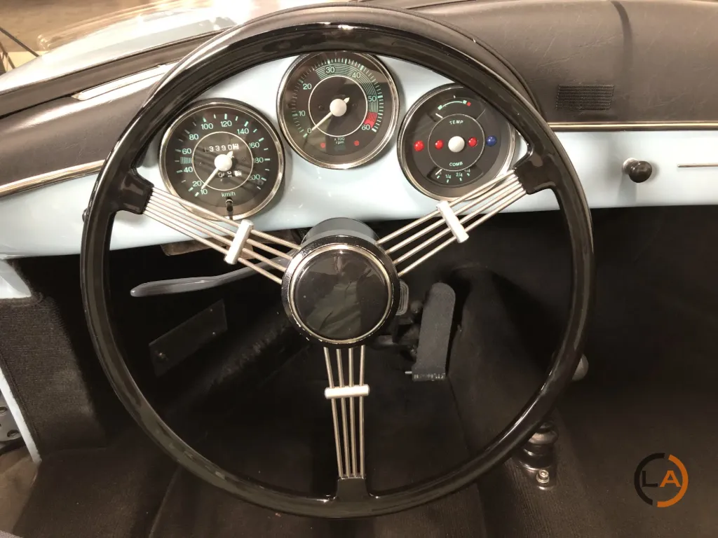 To właśnie detale czynią tego speedstera tak atrakcyjnym. Wnętrze jest tapicerowane w pięknym czarnym kolorze, który idealnie komponuje się z lakierem „Gulf”. Kubełkowe fotele pokryte sztuczną skórą idealnie trzymają ciało.