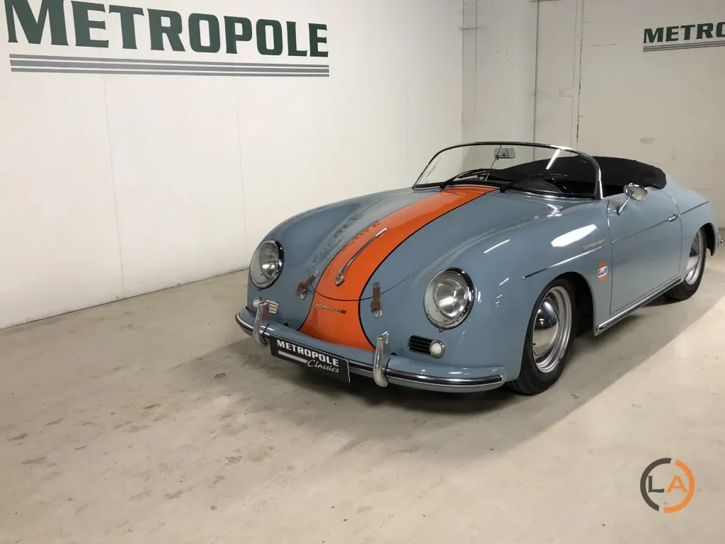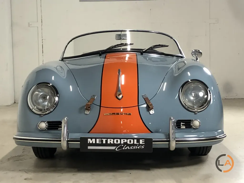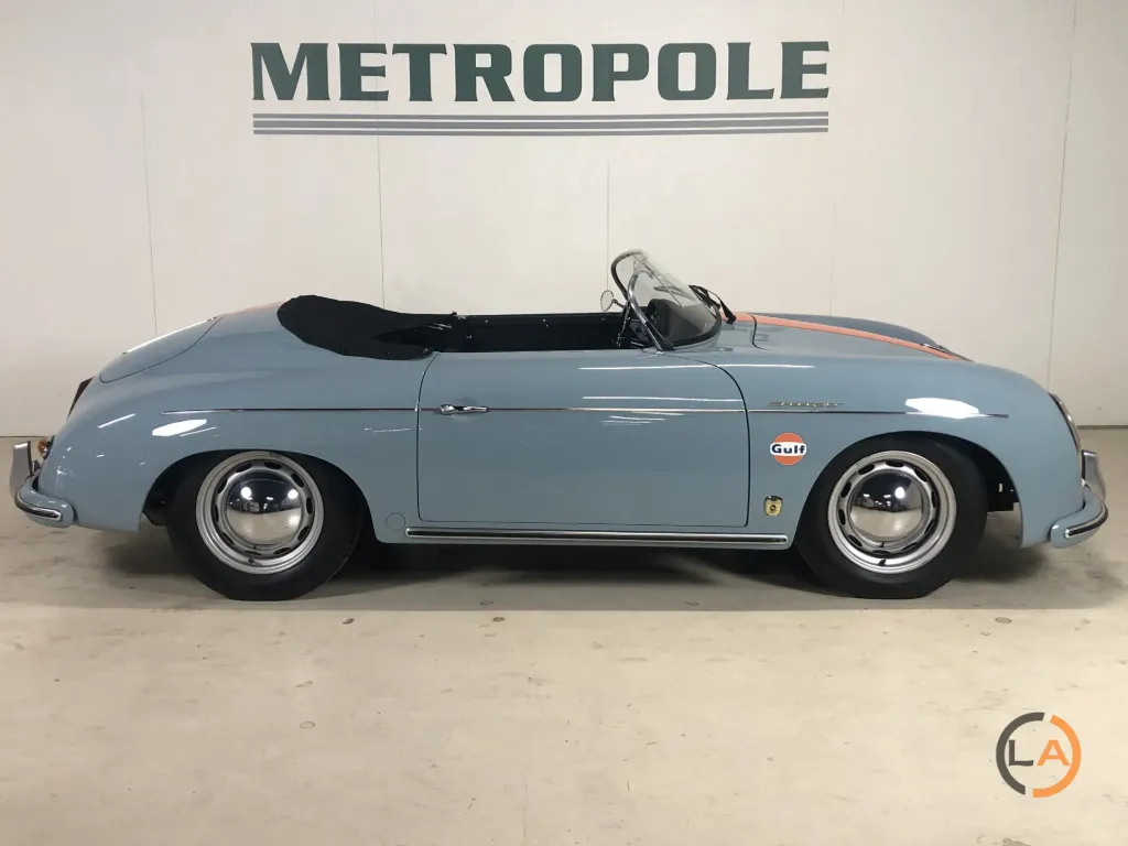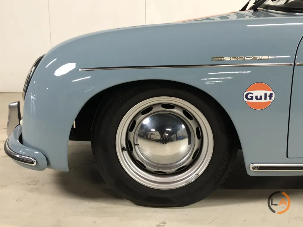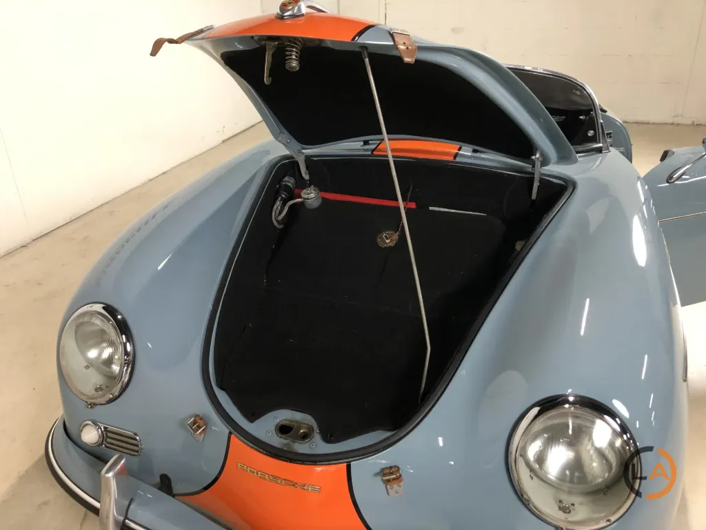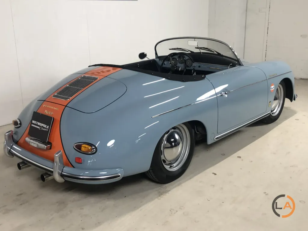 To właśnie detale czynią tego speedstera tak atrakcyjnym. Wnętrze jest tapicerowane w pięknym czarnym kolorze, który idealnie komponuje się z lakierem „Gulf”. Kubełkowe fotele pokryte sztuczną skórą idealnie trzymają ciało.