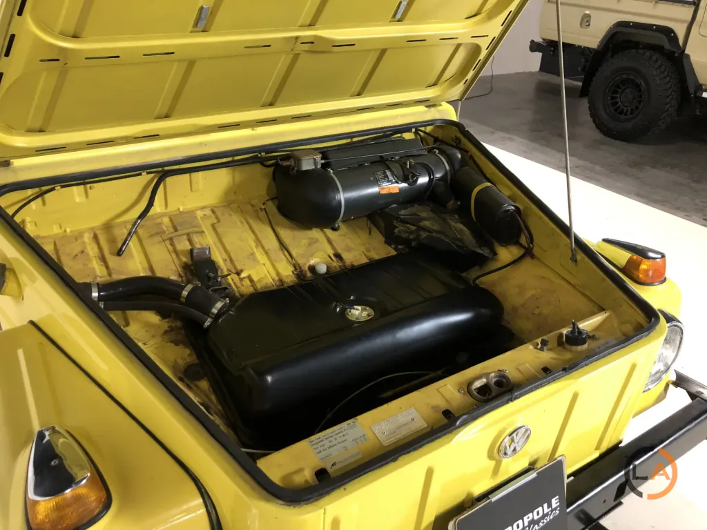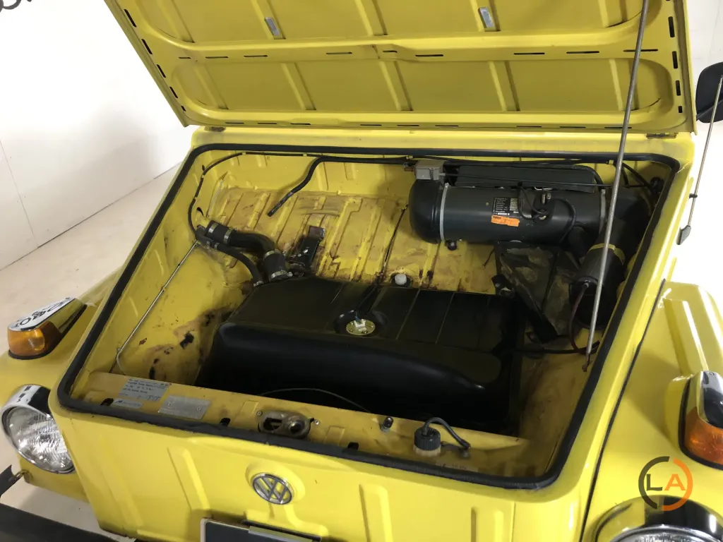 Ten Typ 181 pochodzi z USA i jest żółty z szarym wnętrzem. To samochód, który dobrze się prowadzi, idealny do domku na plaży. Ma twardy dach, który łatwo zdemontować. Dla miłośników Volkswagena z otwartym dachem!